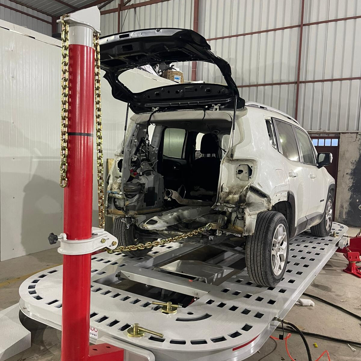 It is a robust and highly precise piece of equipment designed for rectifying significant damage to vehicle chassis. Unlike simpler repair methods, this machine handles the complex task of restoring a vehicle's frame to its original factory specifications after accidents or major impacts. Its platform offers substantial dimensions, typically around 5200x2200 mm, with an adjustable height ranging from 355 mm to 1020 mm, allowing for versatile positioning and access during repair. Vehicles are loaded onto the platform using a parallel and tilting method, ensuring secure placement for the straightening process. This machine is a critical tool for automotive repair shops, especially those dealing with heavy vehicle frame repairs, as it significantly enhances operational efficiency, improves quality standards, and helps reduce overall maintenance costs by accurately correcting chassis alignment.